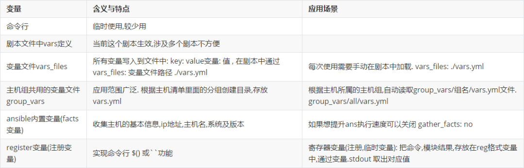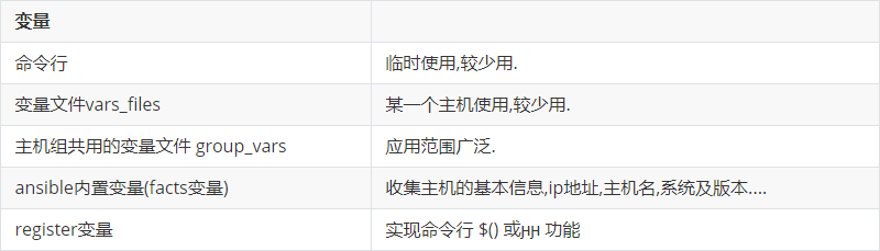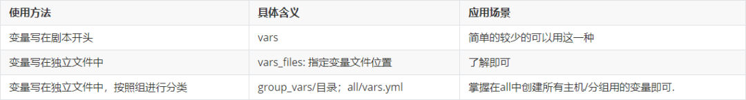 | vars, vars_files, group_vars方式