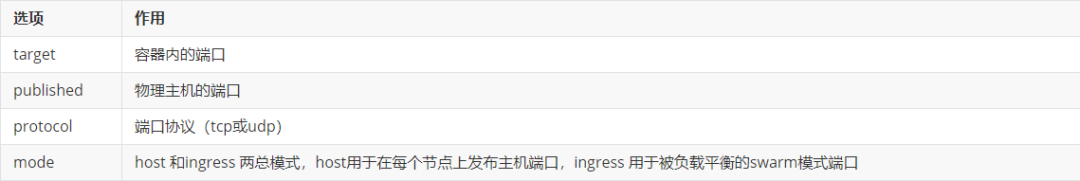 在v3.2中ports的长格式的语法允许配置不能用短格式表示的附加字段长格式: