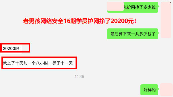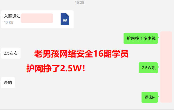 北京就业,薪资14K,护网挣了小3W,老男孩网络安全16期学员!入职去找同班同学一起汇合啦,走哪都是战友,啥也不担心~