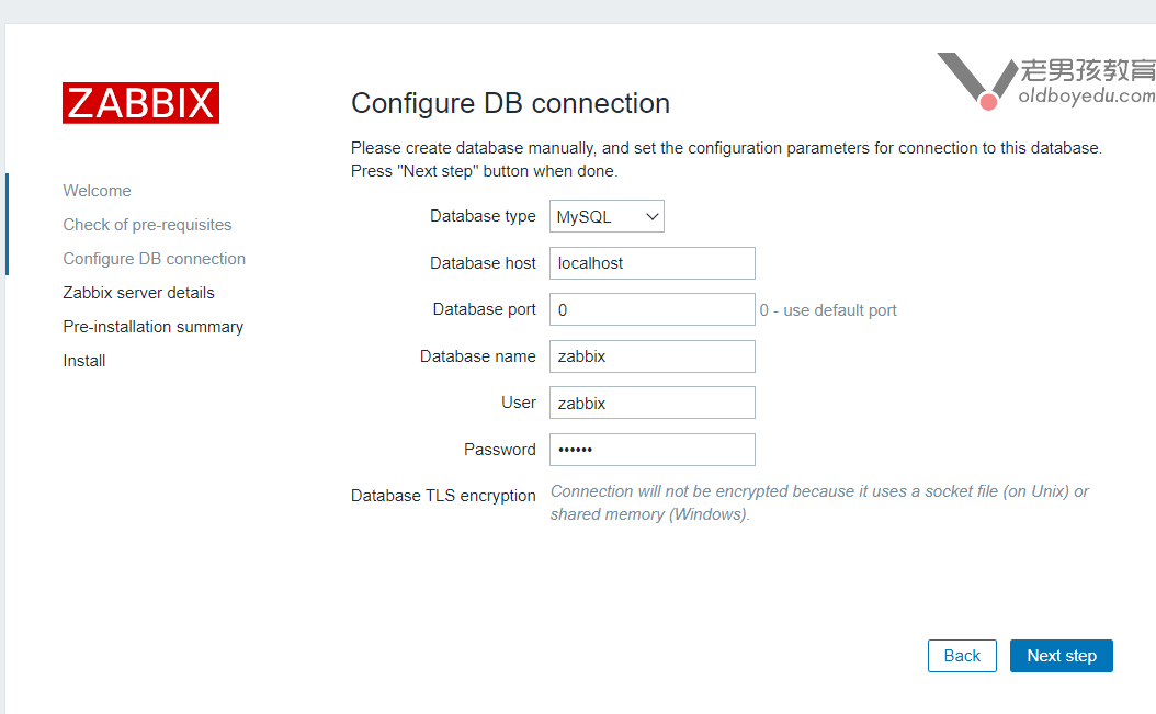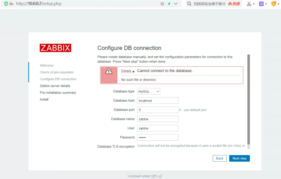 安装zabbix(zabbix 前端页面连接数据库与zabbix-server)