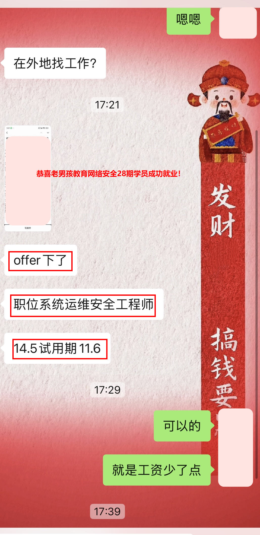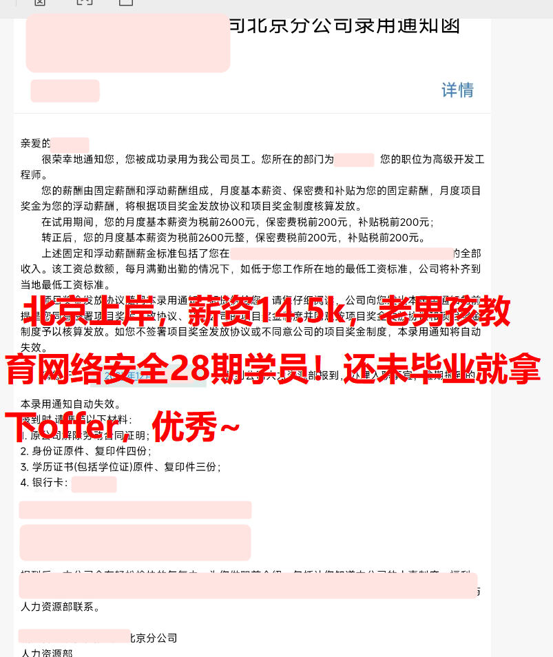 北京上岸,薪资14.5k,老男孩教育网络安全28期学员!还未毕业就拿下offer,优秀~