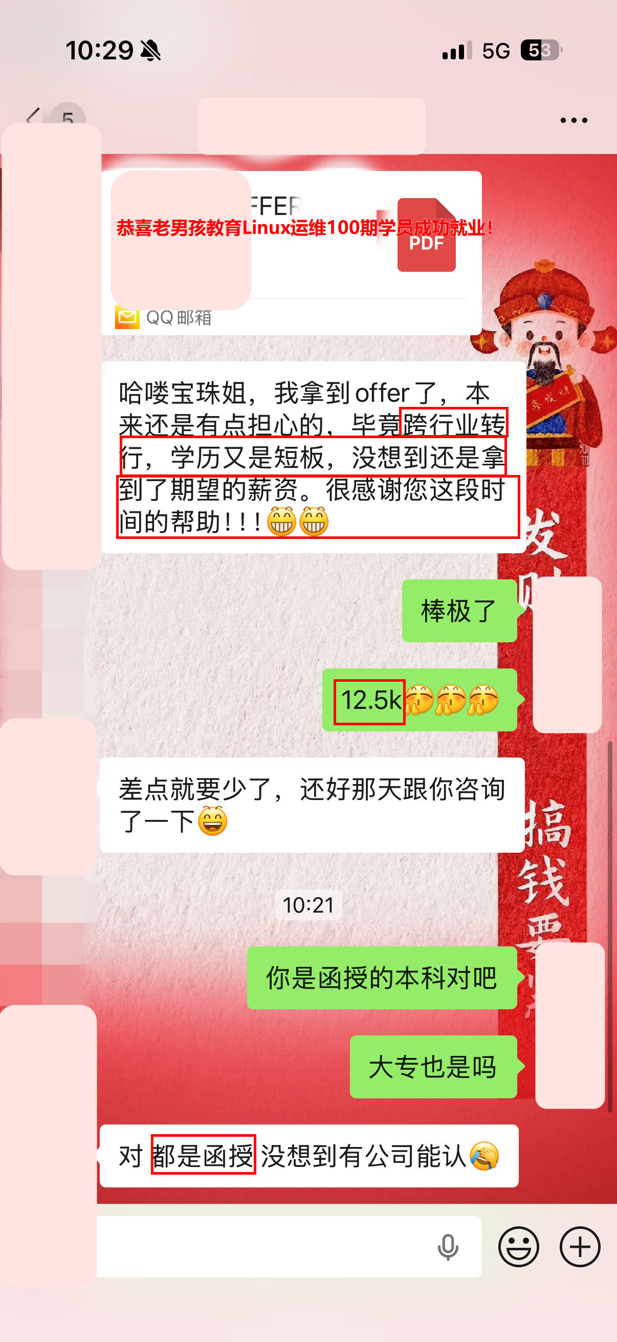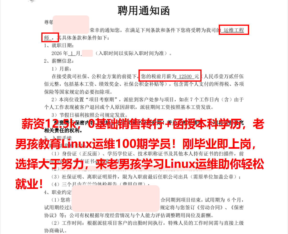薪资12.5k,0基础销售转行+函授本科学历,老男孩教育Linux运维100期学员!刚毕业即上岗,选择大于努力,来老男孩学习Linux运维助你轻松就业!