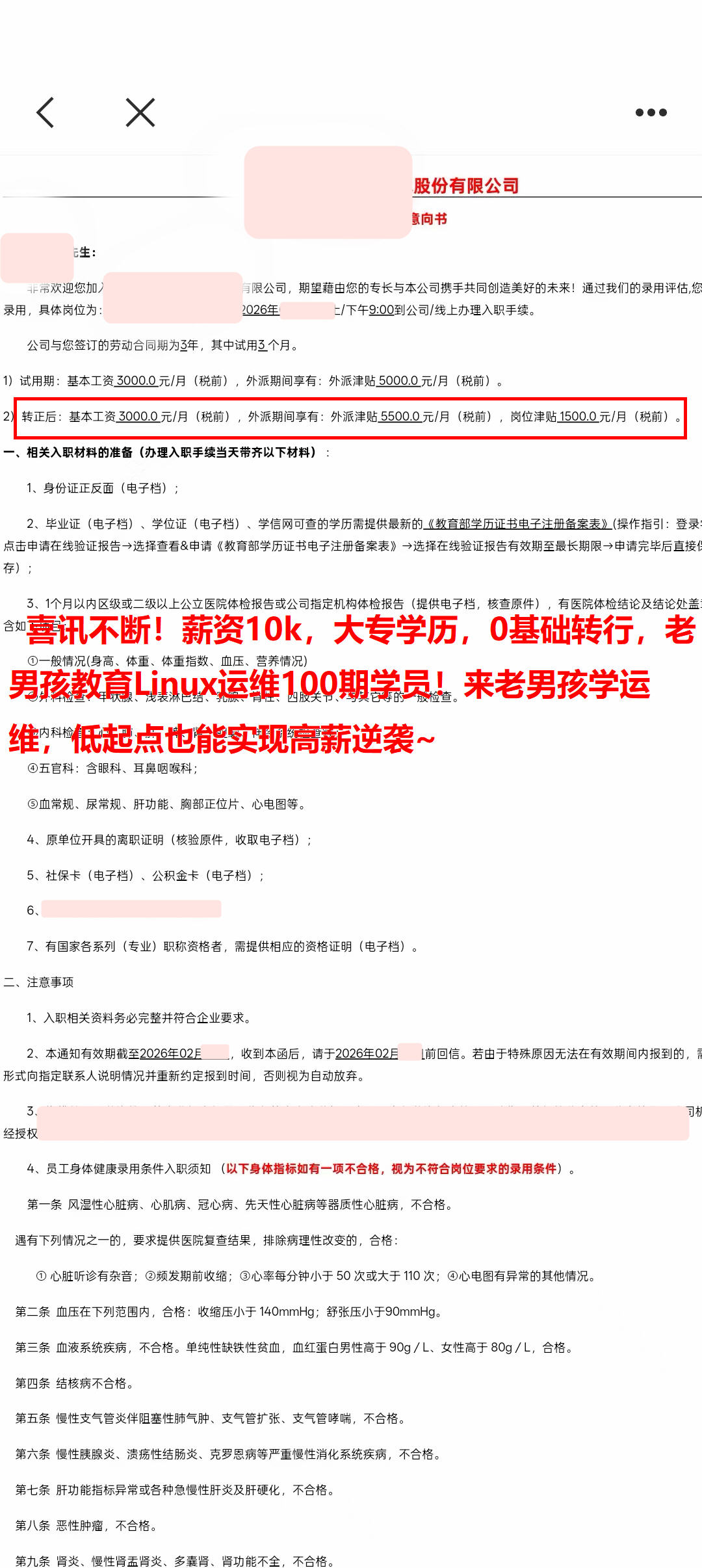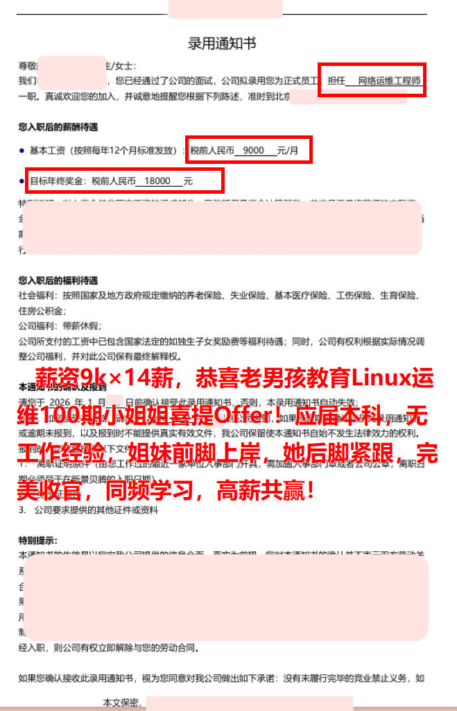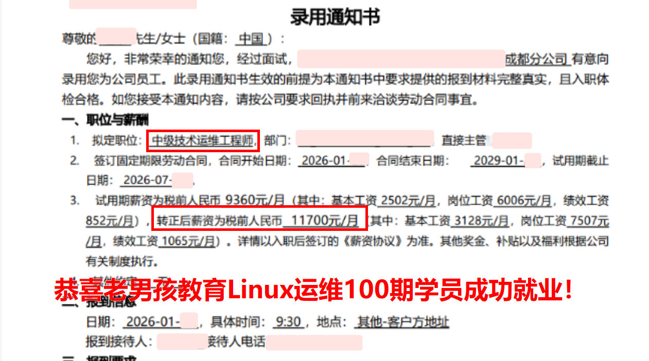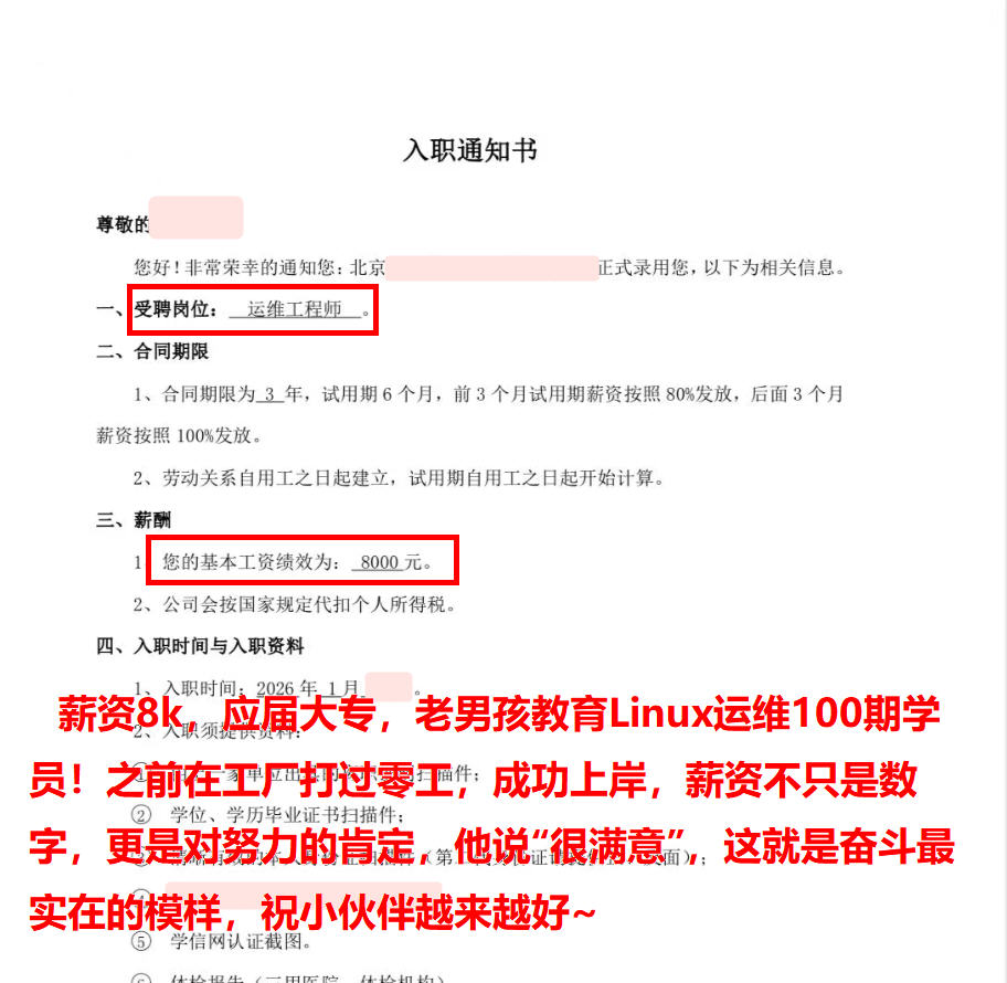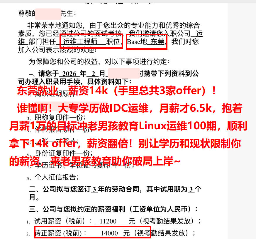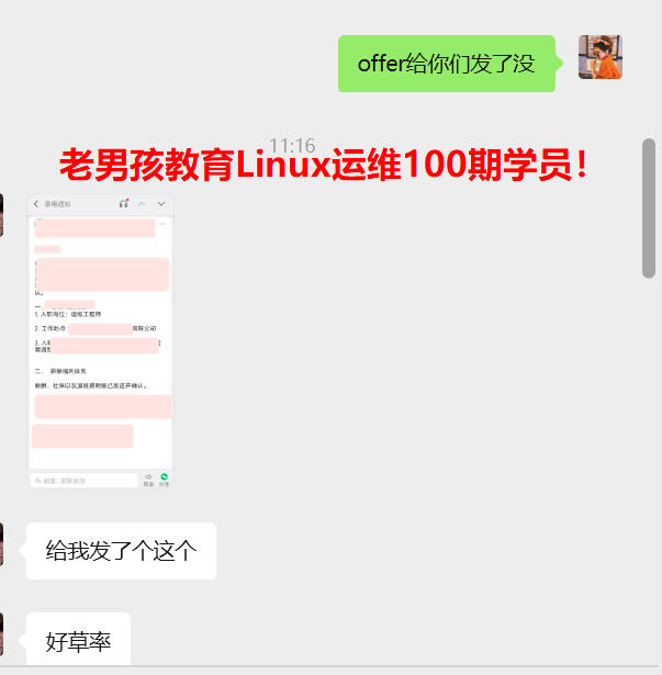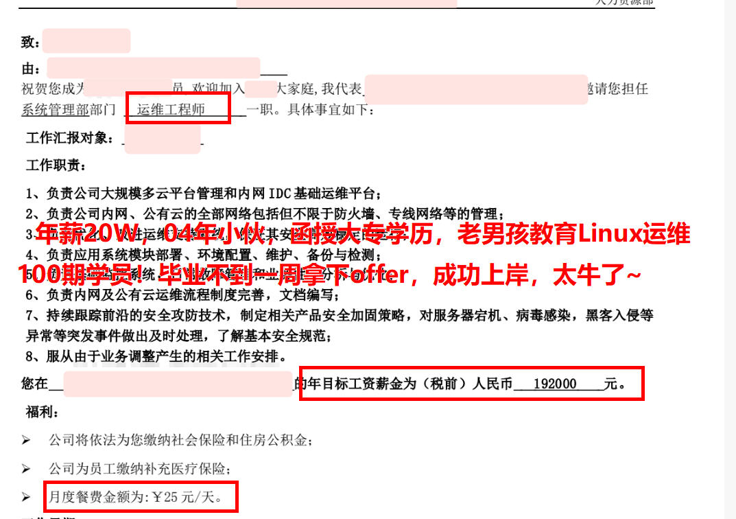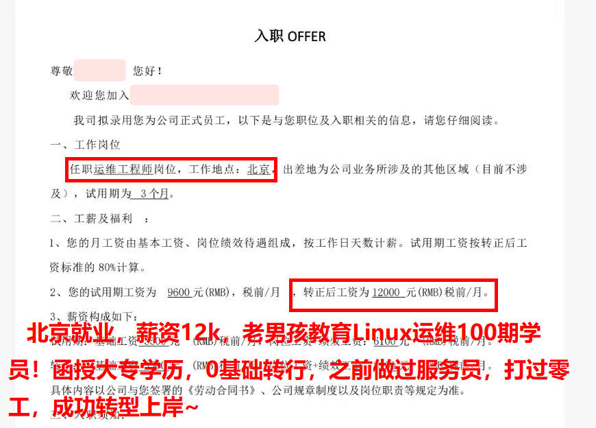 年薪20W,04年小伙,函授大专学历,老男孩教育Linux运维100期学员!毕业不到一周拿下offer,成功上岸,太牛了~