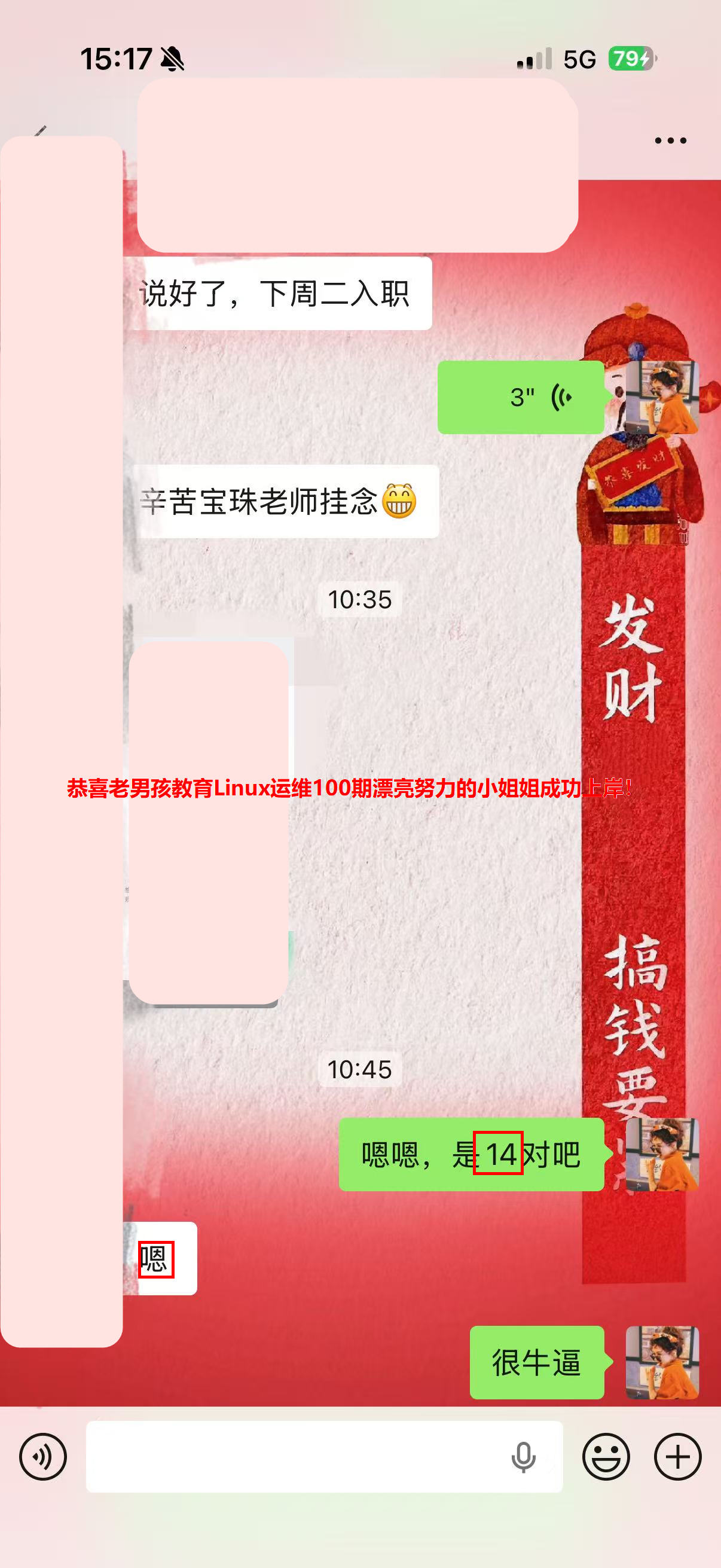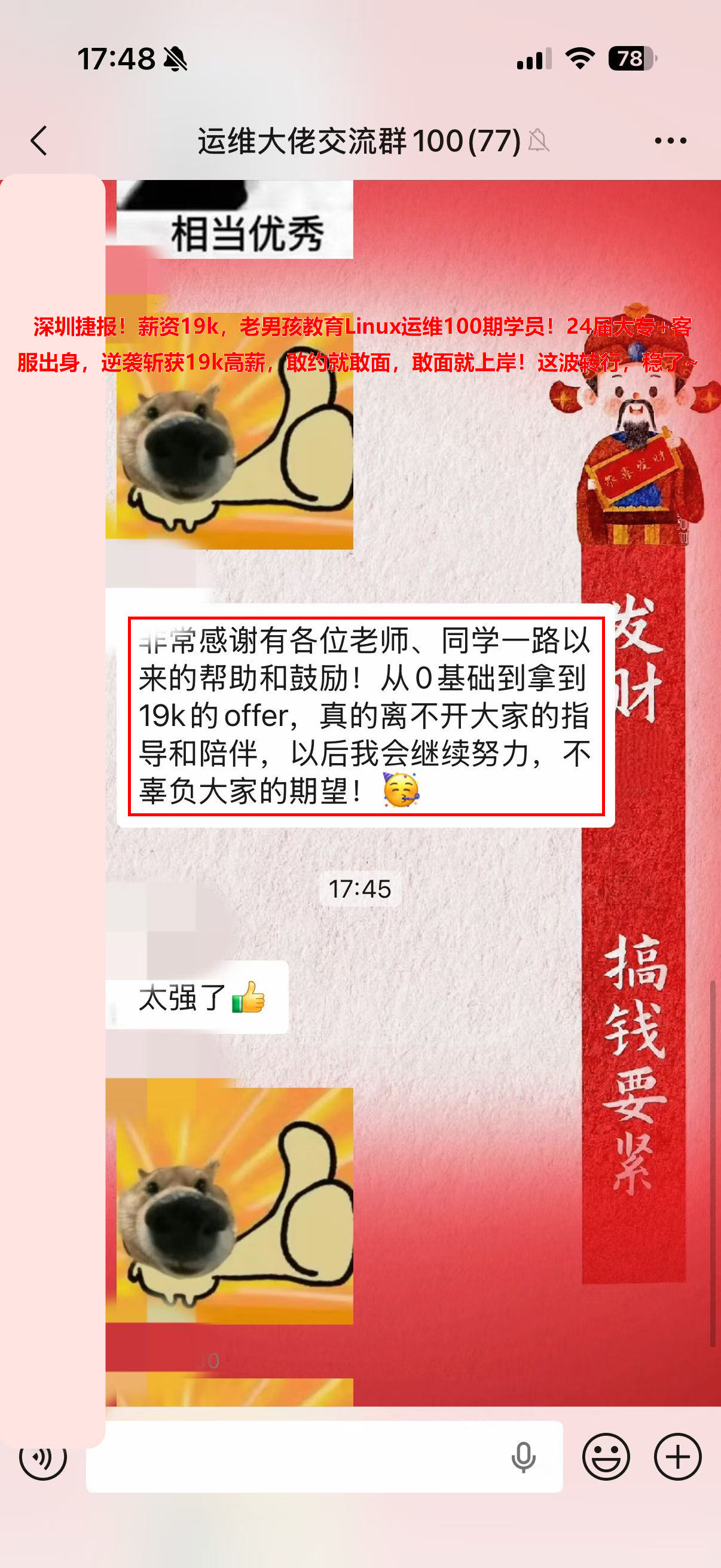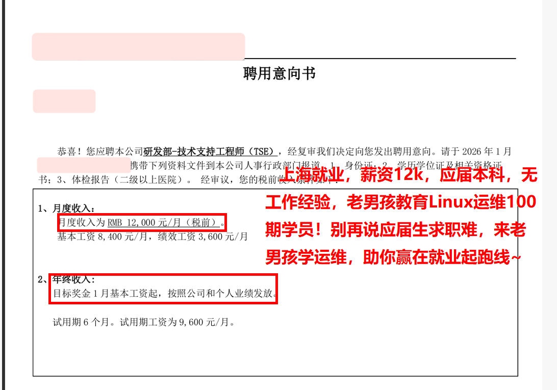 又来offer啦!上海上岸,薪资14k*14薪,老男孩教育Linux运维100期学员!去年毕业的大专,0基础转行,太强啦~