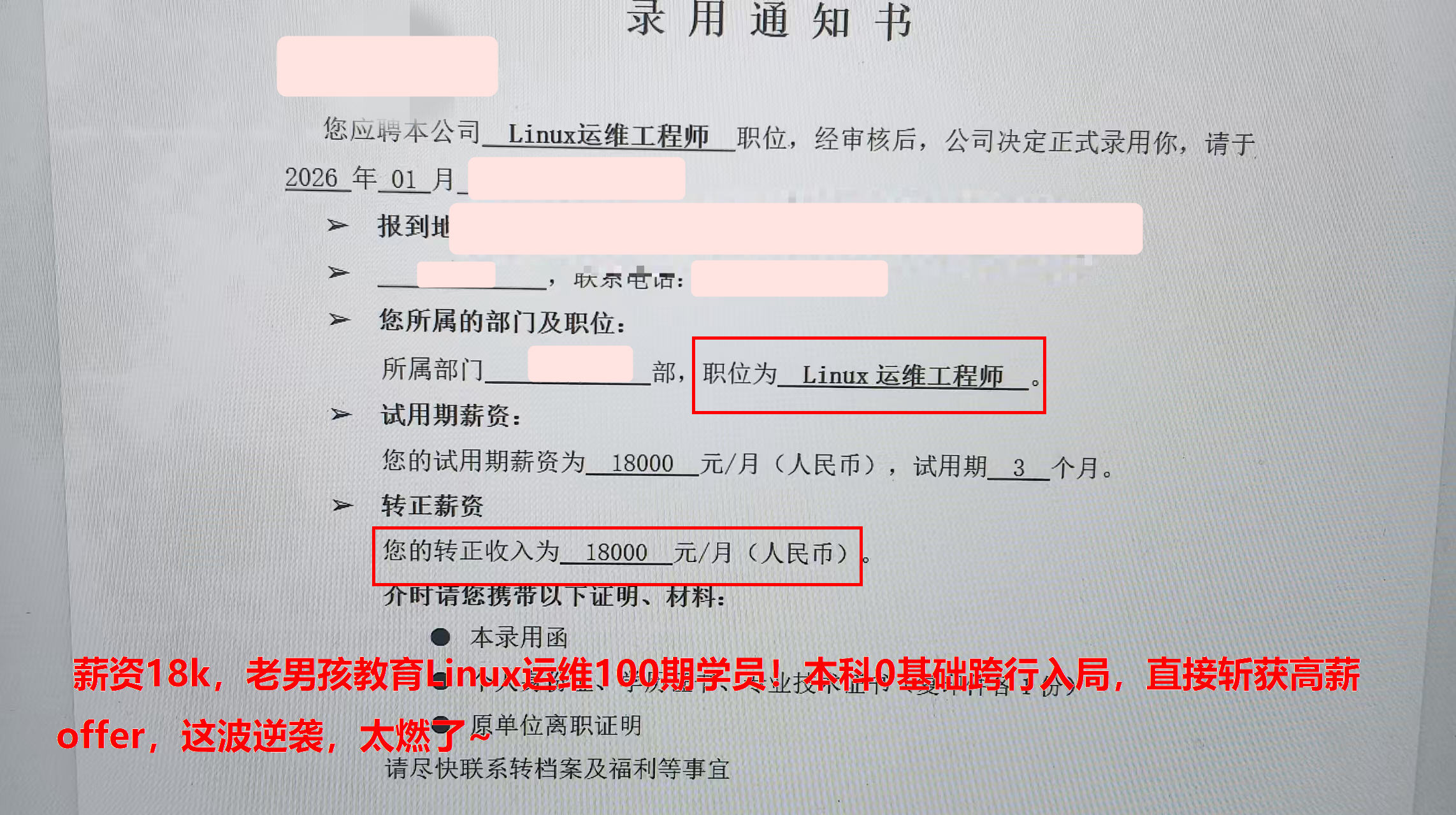 薪资18k,老男孩教育Linux运维100期学员!本科0基础跨行入局,直接斩获高薪offer,这波逆袭,太燃了~