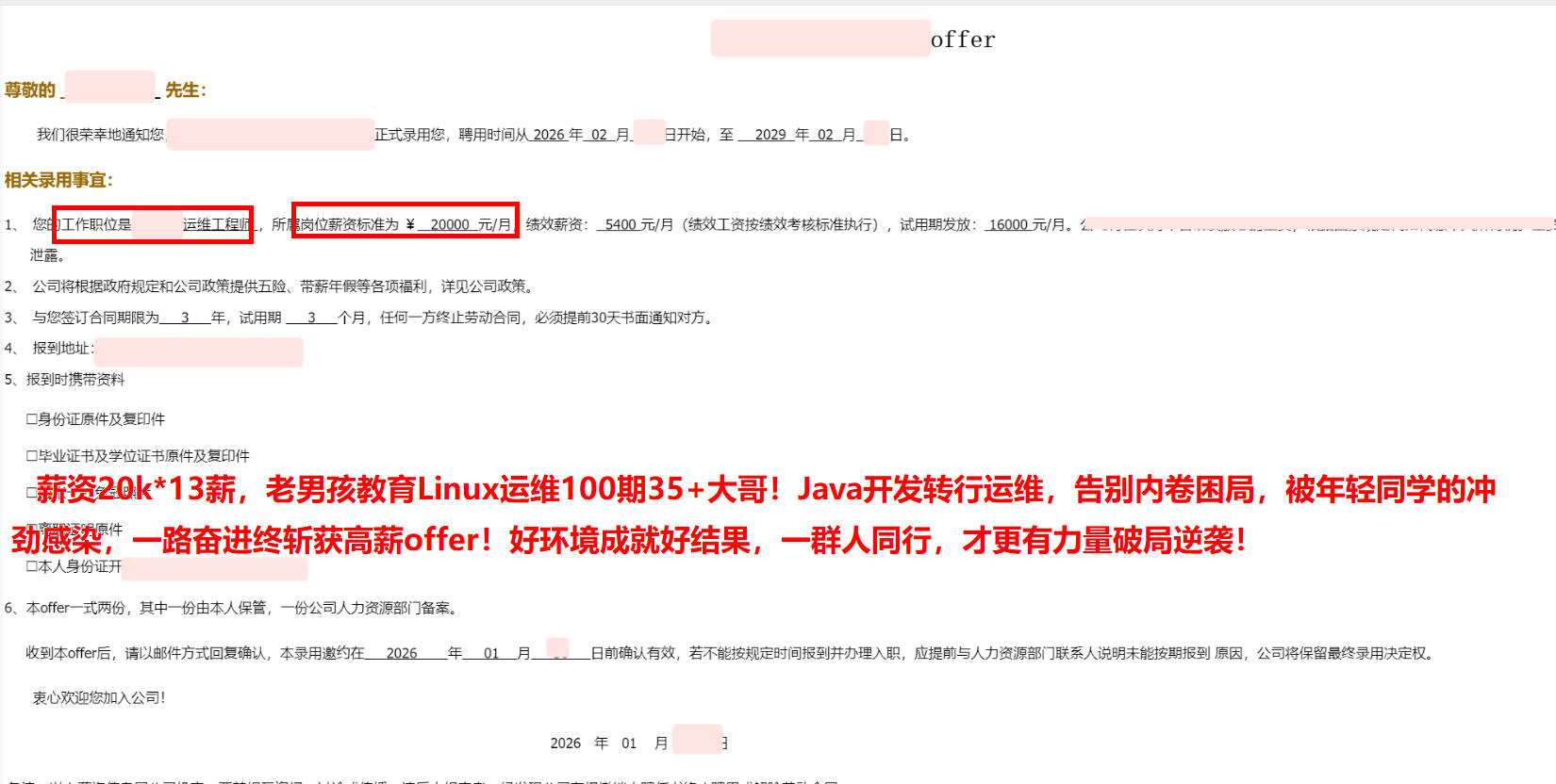 薪资20k*13薪,老男孩教育Linux运维100期35+大哥!Java开发转行运维,告别内卷困局,被年轻同学的冲劲感染,一路奋进终斩获高薪offer!好环境成就好结果,一群人同行,才更有力量破局逆袭!